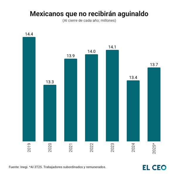 Aguinaldo 2025: 13.6 millones de trabajadores se quedarán sin esta prestación en México