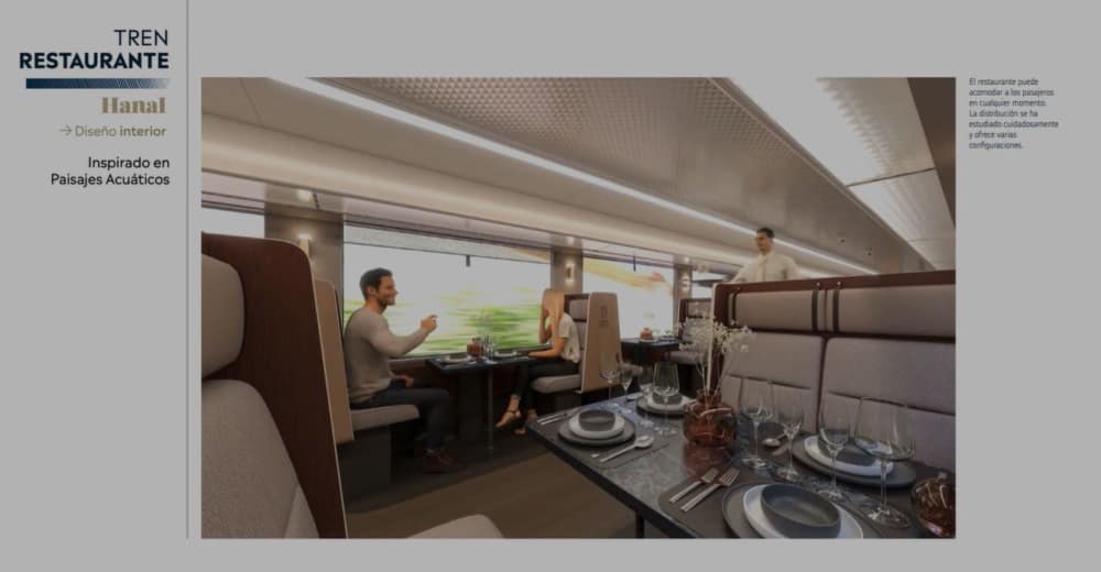 Hanal es el tren restaurante, tendrá mesas hasta de cuatro plazas. De acuerdo con la presentación, el diseño interior está basado en la obra del arquitecto mexicano Luis Barragán.