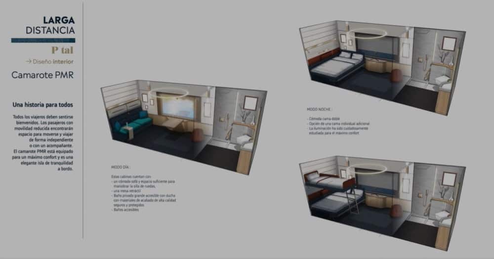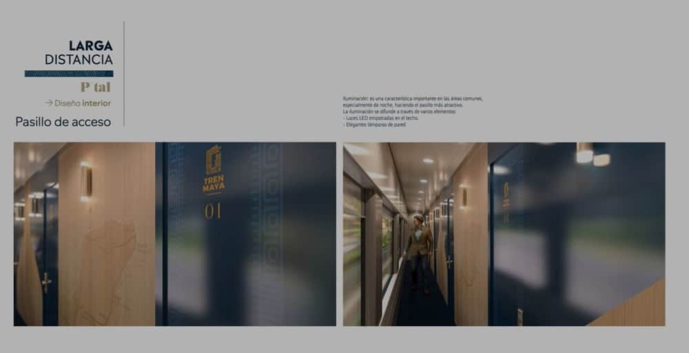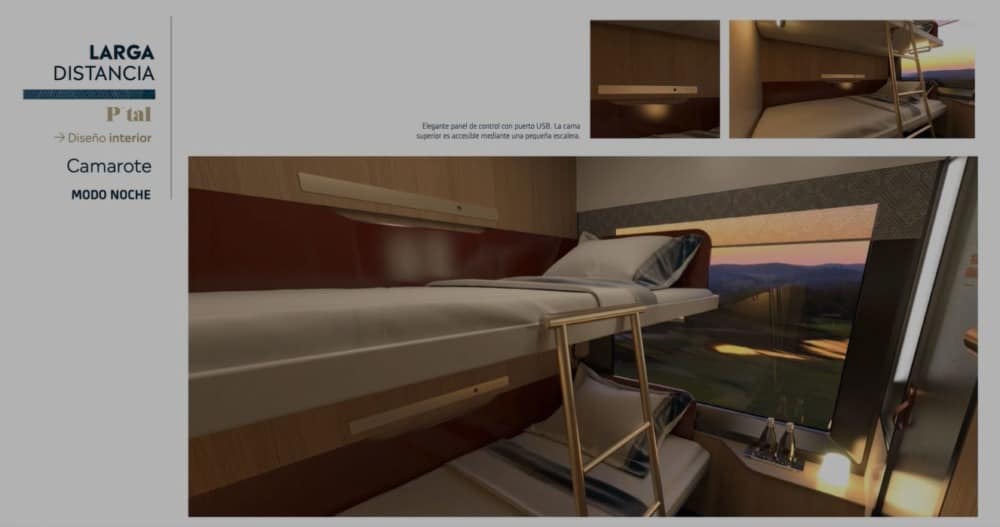El tercero es P’tal, que es el tren de larga distancia y tendrá la opción de pasar la noche en las butacas o camarotes. Los camarotes son adaptables, en el modo día pueden ser usados como asientos que por la noche pueden cambiar su configuración a literas y tendrán cabinas de baño con regadera individuales. P’tal también contará con asientos simples, es decir fuera de cabina y una cafetería.