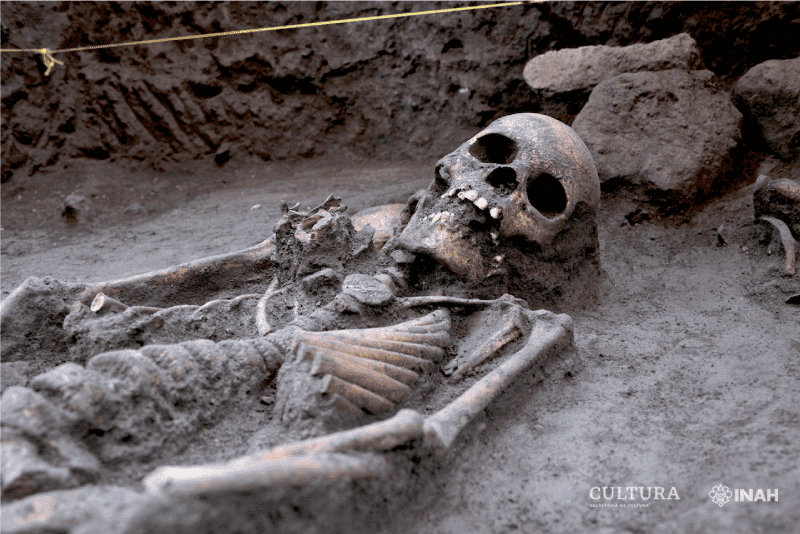 De los restos encontrados en el patio destacan los de un individuo adulto al que se le ofrendó un bezote de obsidiana (una pieza decorativa que se colocaba en el labio inferior) y una vasija de la loza del tipo Texcoco Bruñida, eso es “indicativo de que el personaje contaba con cierto estatus social, por lo menos, dentro de la familia o localidad” explica el INAH.