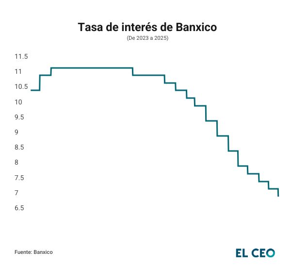La junta de gobierno del Banco de México (Banxico) cerró el año con un nuevo recorte de 25 puntos base a la tasa de interés, con lo que pasa de 7.25% a 7.00%, en línea con las expectativas del mercado.