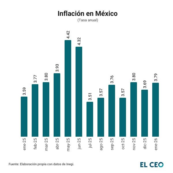La ‘cuesta de enero’ de este año llegó con una presión adicional para el bolsillo de los mexicanos. En el primer mes de 2026, la inflación general anual repuntó a 3.79%, luego de moderarse a 3.69% anual al cierre de 2025, de acuerdo con el Instituto Nacional de Estadística y Geografía (Inegi).
