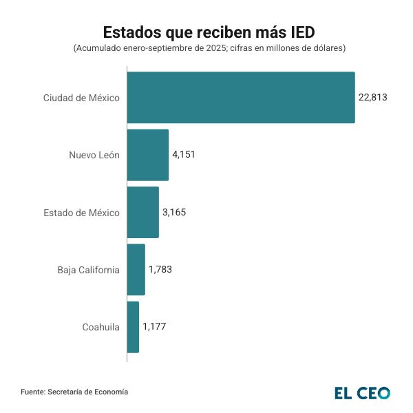 Inversión Extranjera Directa no es para todos; los estados que se han beneficiado en 2025