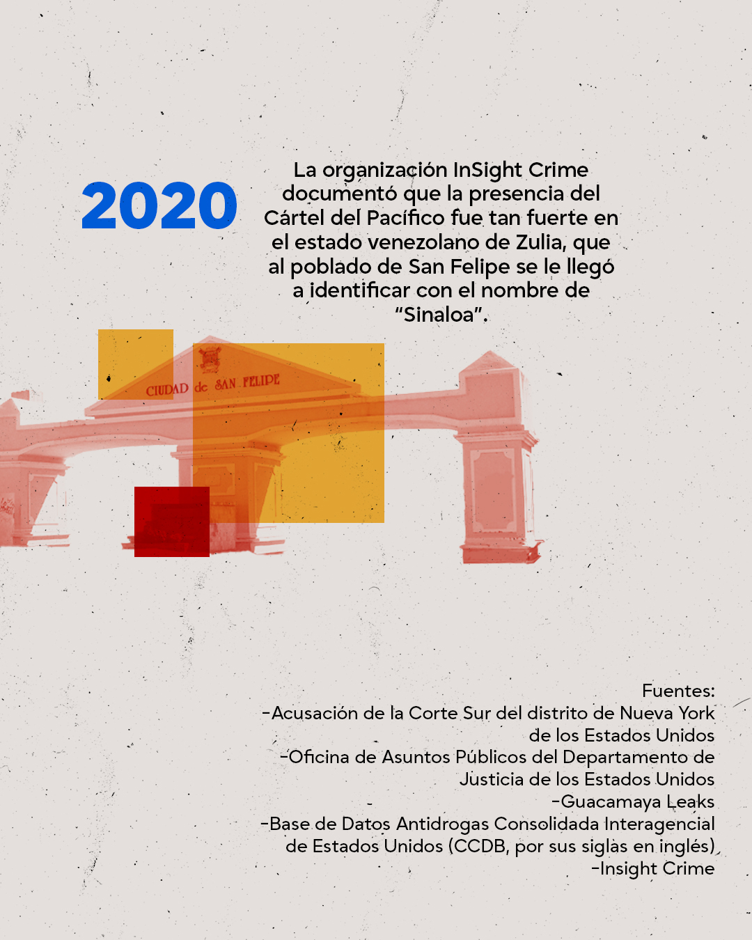De acuerdo con la organización Insight Crime, en 2020 fue tanta la presencia del Cártel de Sinaloa, principalmente en el estado de Zulia, que el poblado de San Felipe, ubicado en el municipio de Machiques de Perijá, se le llegó a identificar con el nombre de “Sinaloa”.