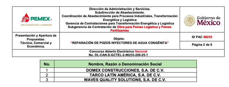 Waves Quality Solutions y su representante Juventino González también aparecieron al inicio de ese proceso, pero finalmente no presentaron una propuesta económica.