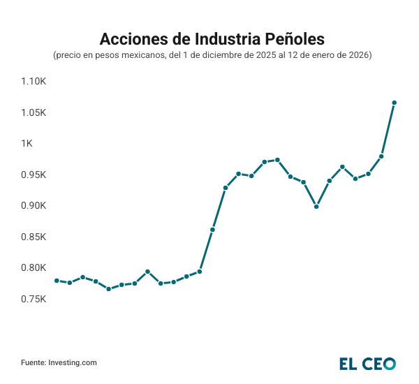 De acuerdo con Bloomberg, el desempeño de las mineras —incluida Peñoles— se vio favorecido por el repunte del oro y la plata durante este lunes, cuando ambos metales alcanzaron nuevos máximos históricos, impulsados por un mayor sentimiento de aversión al riesgo.
