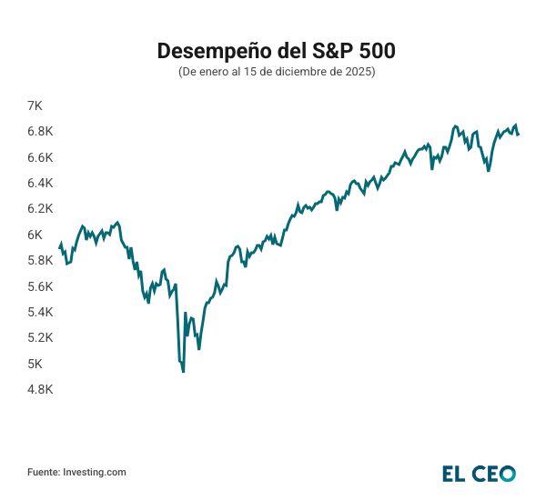 Asimismo, si el S&P logra mantener su tendencia en el siguiente año, podría alcanzar nuevos récords, superando la barrera de los 8,000 puntos. Actualmente el índice se mantiene en los 6,827.41 puntos hasta el cierre de la jornada del pasado 12 de diciembre.