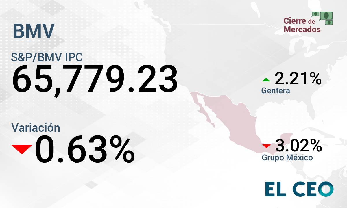 El Índice de Precios y Cotizaciones (IPC) de la Bolsa Mexicana de Valores (BMV) cierra las operaciones de este miércoles con una pérdida de 0.63%, a 65,779.23 puntos, según datos de la propia institución bursátil. Con esto, el mercado accionario mexicano mantiene su tendencia en zigzag, la cual arrastra desde las operaciones del 13 de marzo.
