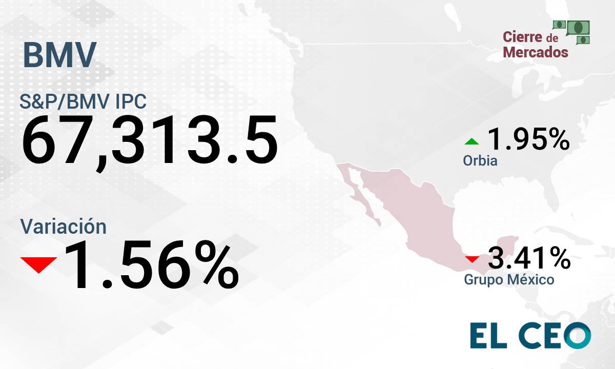 El Índice de Precios y Cotizaciones (IPC) de la Bolsa Mexicana de Valores (BMV) inicia las operaciones de este viernes con una caída de 1.1%, a 67,630.3 puntos (Ciudad de México, 9:02 horas), según datos de la propia institución bursátil.