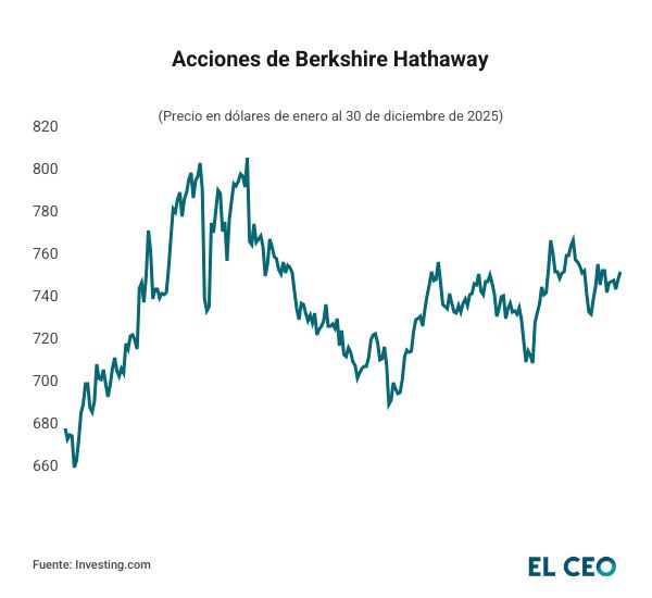 A un día de su salida, las acciones de la serie A de Berkshire Hathaway cerraron las operaciones de este martes con un alza de 0.45%, a 755,400 dólares  y con esto registra una ganancia acumulada en 2025 de 11%.
