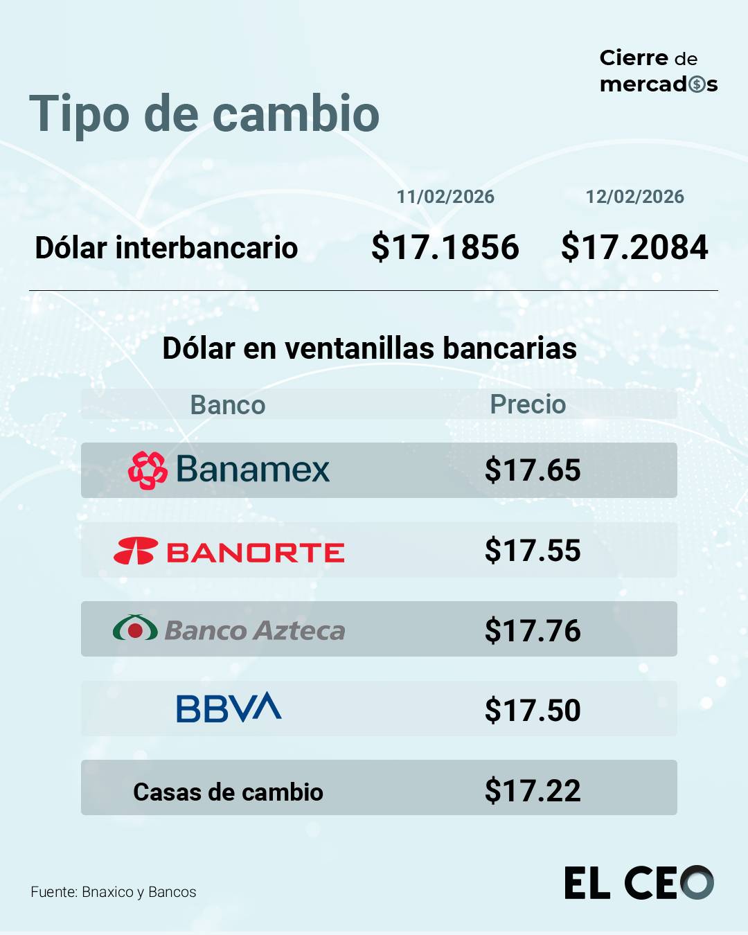 El peso registra una pérdida de 0.13%, para cotizar en 17.2084 unidades por divisa estadounidense, según datos del Banco de México (Banxico). Con esto, la moneda suma su segunda jornada consecutiva depreciandose frente al dólar.