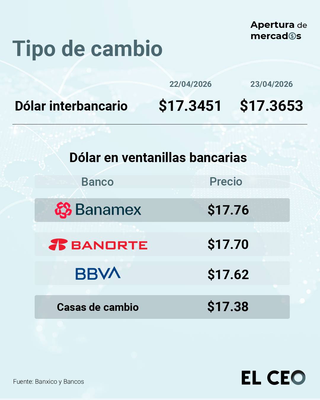 El analista agregó que otro factor que sigue debilitando al peso mexicano son los acontecimientos en Medio Oriente, ya que, aunque se mantiene el alto al fuego, el bloqueo del estrecho de Ormuz sigue presionando al alza los precios del petróleo.
