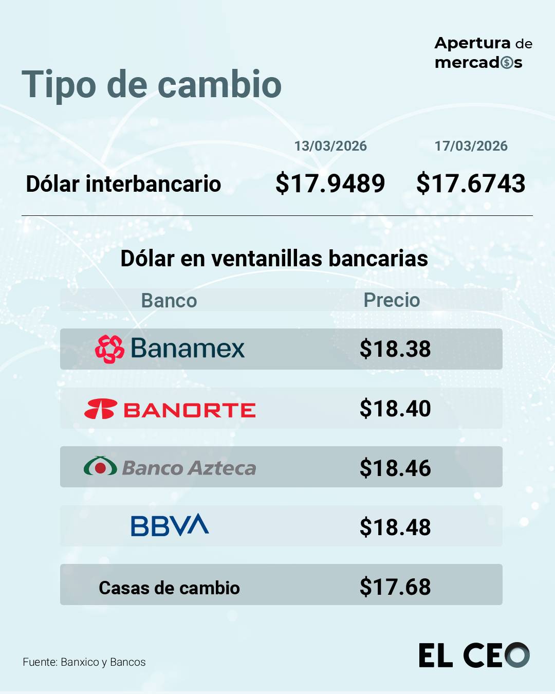 Además, los inversionistas se mantienen cautelosos a la espera de la reunión de los funcionarios de la Fed, que se llevará a cabo este 17 y 18 de marzo. Los mercados anticipan que el banco central de Estados Unidos mantenga sin cambios la tasa de interés, en el rango de 3.50% a 3.75%.