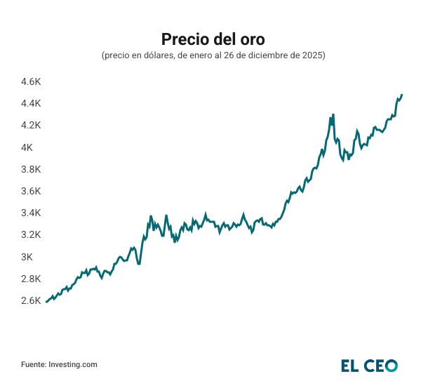 Asimismo, estos repuntes vertiginosos tienen que ver con mayores compras de los bancos centrales, la entrada de capitales a los fondos cotizados en bolsa (ETFs) y tres recortes consecutivos a la tasa de interés por parte de la Reserva Federal de Estados Unidos (Fed). Los operadores apuestan por más reducciones de tipos en 2026.