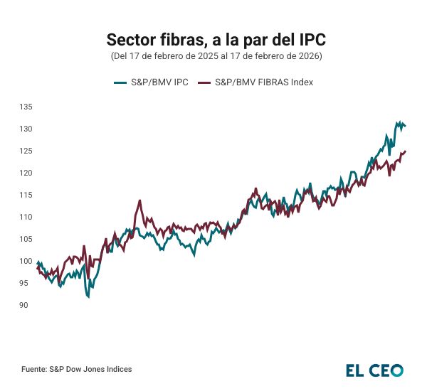 Como sector, el de fibras registró un comportamiento más que positivo en los últimos 12 meses, de acuerdo con el S&P Dow Jones. En ese periodo, el rendimiento del índice fibras fue de 27.28%, mientras que el del S&P/BMV IPC, el índice de referencia del mercado mexicano, mostró un avance de 31.06%.