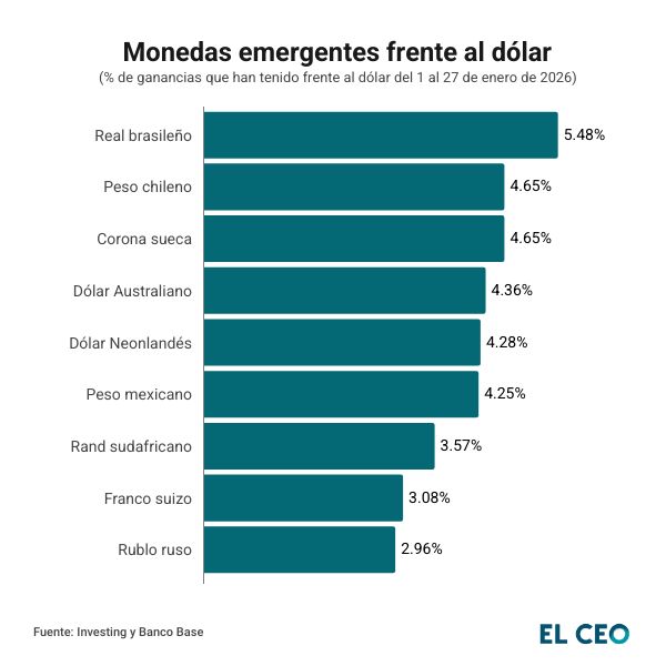 Del peso mexicano al real brasileño: las monedas que se benefician del dólar débil en 2026