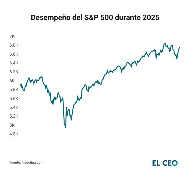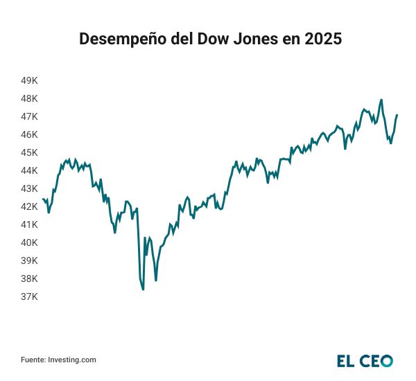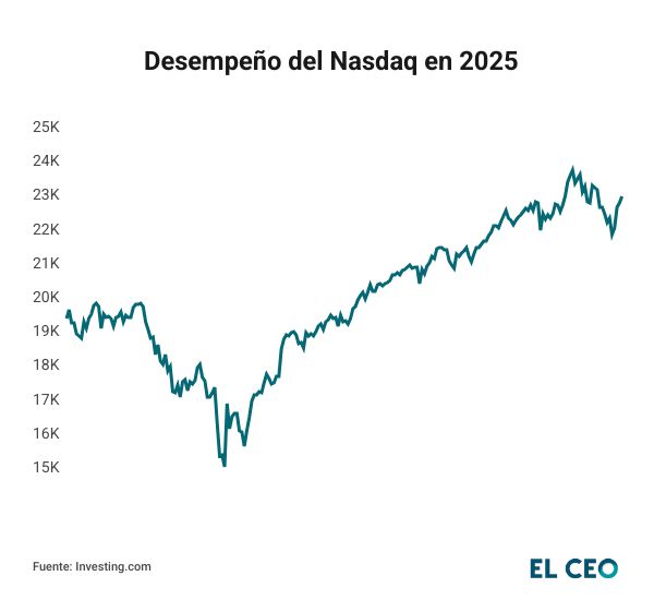 Por su parte, el Dow Jones registró un crecimiento acumulado del 11.48%, a 47,427.12 puntos, mientras que el Nasdaq Composite ha avanzado en 20.22% hasta los 23,214.69 unidades.