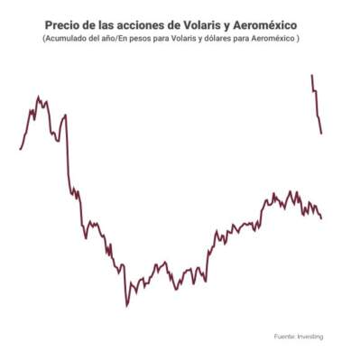 Por su parte Aeroméxico, que regresó al mercado de valores hace un par de semanas, cerró con una caída de 2.1% en el valor de sus papeles, los cuales cotizan principalmente en la Bolsa de Nueva York (NYSE). Con ello, sus acciones acumulan una contracción de 20% en el precio desde su debut el 7 de noviembre.