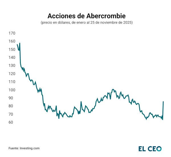 Sin embargo, a nivel de toda la empresa, las ventas incrementaron 7%, a 1,290 mdd, superando las expectativas. Abercrombie también reportó ganancias por acción de 2.36 dólares cada una frente a los 2.16 dólares esperados, además de ingresos por 1,290 mdd ante los 1,280 mdd previstos; mientras que su utilidad neta fue de 113 mdd en comparación con 131,980 del mismo periodo de 2024.