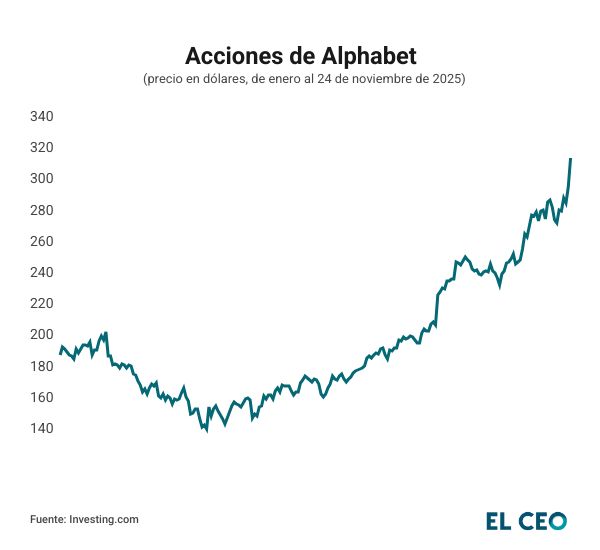Al cierre de la jornada, las acciones de Alphabet lograron subir 6.28%, a 318.47 dólares cada una, de acuerdo con Investing, superando los 3.8 billones de dólares de valor.