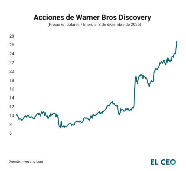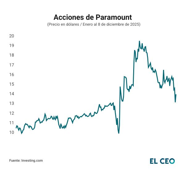 Por su parte, Paramount Skydance inició la jornada de este lunes al alza tras el anuncio de su sexta oferta, con sus acciones subiendo 6.21%, a 14.20 dólares. Warner Bros también registra una aumento en sus títulos, que avanzan 5.81%, a 27.59 dólares (Ciudad de México, 10:07 horas), según Investing.