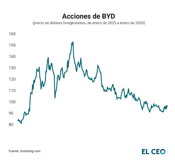 El mercado está recibiendo con gran entusiasmo el desempeño de BYD, pues sus acciones avanzan hasta 3.55%, a 99.20 dólares hongkoneses (Ciudad de México, 8:50 horas), de acuerdo con datos de Investing. No obstante, la sesión anterior la cerró a la baja.