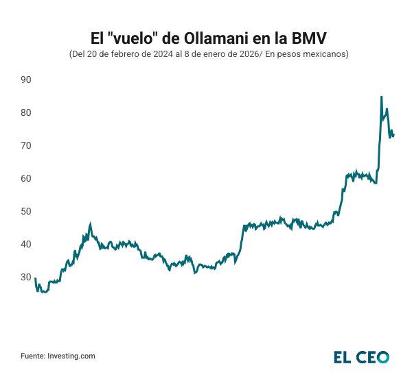 Las acciones de Ollamani pueden escalar hasta los 112 pesos, de acuerdo con estimaciones de la casa de bolsa GBM. Esto significa un potencial de crecimiento de 47%, si se toma en cuenta el precio de cierre del 8 de enero, de 76.20 pesos por CPO.