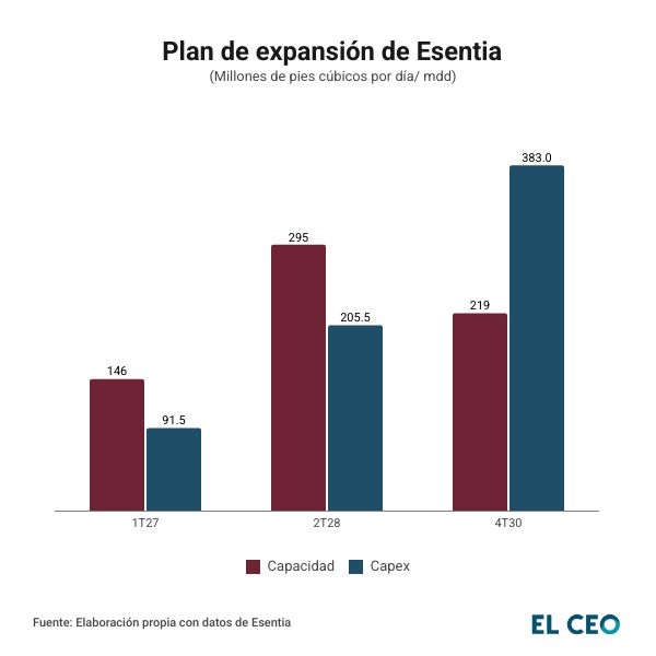 Para la CFE, Esentia es un proveedor estratégico para cumplir su objetivo de abastecer el 54% de la energía eléctrica del país, no solo por tener acceso al gas natural más barato, sino también por su competitividad en costos de transporte.