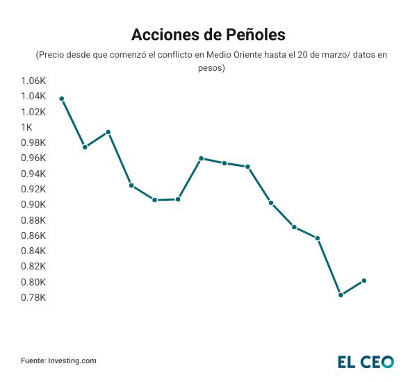 Por otra parte, las acciones de Peñoles registran un retroceso de 22.40%, al ubicarse en 808.58 pesos en el mismo periodo. Antes del inicio del conflicto, los títulos de la compañía de Alejandro Baillères acumulaban una ganancia de 15.52% en lo que iba del año.