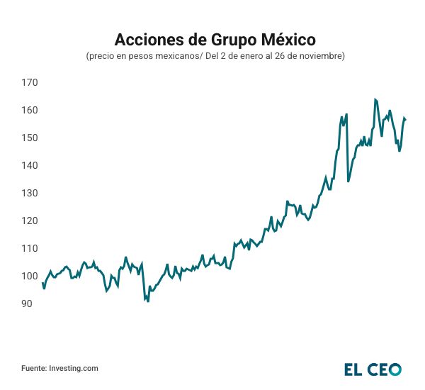 Por su parte, el S&P/BMV IPC, principal índice de referencia del mercado accionario mexicano, acumula una ganancia de 27.7%. Además, proyecciones de GBM apuntan a que las acciones de la empresa de Germán Larrea podrían alcanzar los 200 pesos cada una.