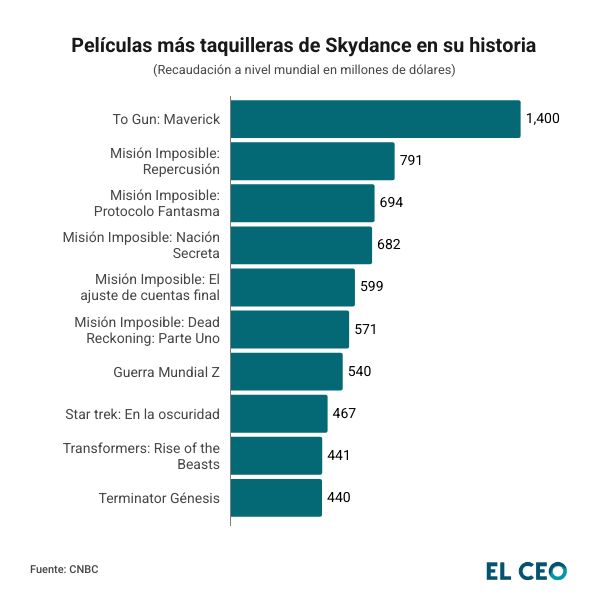 Antes de concretar su fusión con Paramount en agosto del año pasado, Skydance, fundada por David Ellison, había logrado únicamente siete películas con una recaudación superior a 500 millones de dólares (mdd) a nivel mundial desde 2006, y solo una superó los 1,000 mdd. En contraste, grandes estudios como Warner Bros o Disney han alcanzado esa cifra de manera mucho más recurrente con varias de sus producciones.