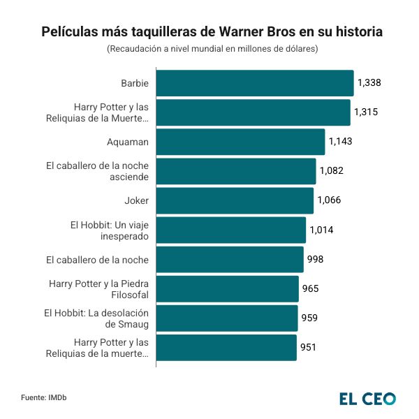 Si bien Warner Bros. no alcanza el ritmo reciente de Disney, sí registra mayores éxitos históricos que Skydance, ya que desde 2006 ha logrado que seis de sus producciones superen los 1,000 mdd en taquilla global.