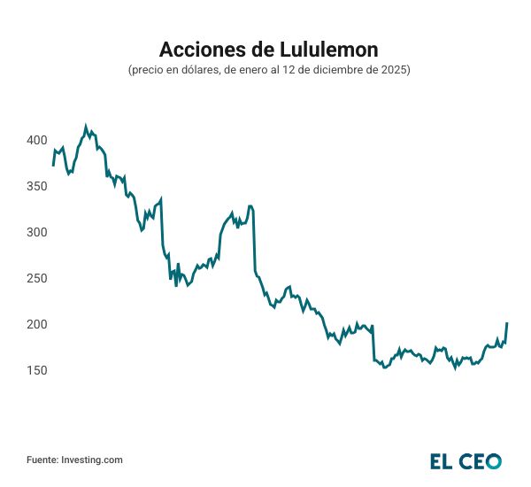 Las acciones de Lululemon, la famosa marca de ropa deportiva, elevaron su valor en 12.18%, a 209.79 dólares cada una (Ciudad de México, 14:29 horas), de acuerdo con datos de Investing, esto tras anunciar la renuncia de su CEO, Calvin McDonald y los resultados del tercer trimestre fiscal.