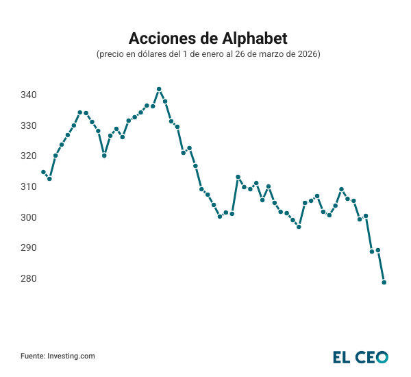 Por su parte, los inversionistas de Alphabet, matriz de Google, han reaccionado de manera más moderada. Sus acciones registran un descenso de 2.58%, cotizando en 280.55 dólares por unidad.