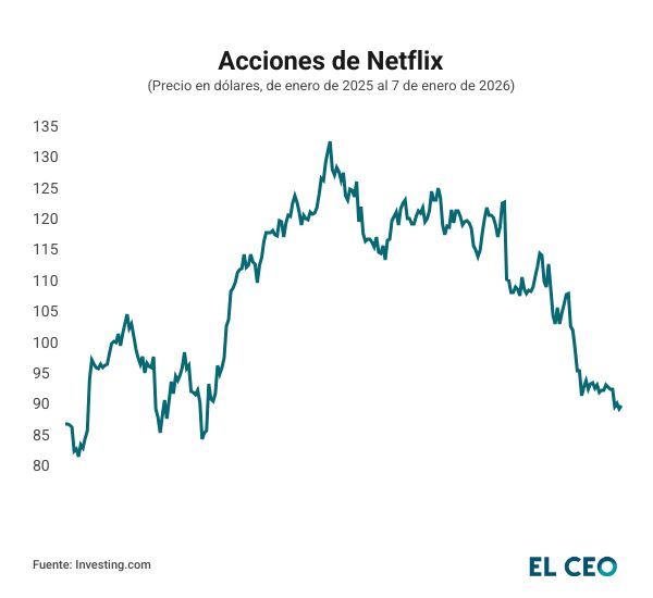 Mientras tanto, Netflix inició la jornada con una ganancia de 1.35%, a 91.84 dólares por acción (Ciudad de México, 8:40 horas), desde el inicio de 2025, la compañía de streaming suma una ganancia de 2.28%.