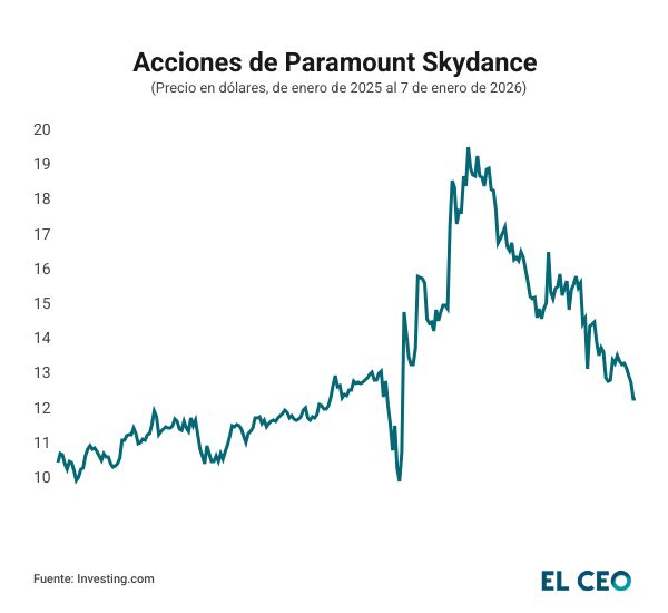 Al inicio de las operaciones de este miércoles, las acciones de Paramount registraron una caída de 0.56%, a 12.43 dólares (Ciudad de México, 8:40 horas), según datos de Investing. Con esto, la compañía de Ellison acumula una ganancia de 19.41% desde el inicio de 2025, sin embargo registra una pérdida de 14.90% en sus acciones desde septiembre, cuando hizo su primera oferta por Warner Bros.