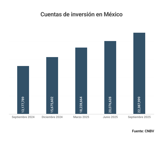 Ese es el punto central: México no tiene 22 millones de inversionistas. Tiene 22 millones de cuentas, la mayoría muy pequeñas, muchas inactivas, y casi todas concentradas en GBM.