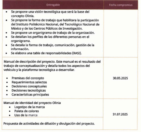 De acuerdo con el contrato consultado por EL CEO, Rocketel es el encargado del planteamiento técnico de Olinia hasta la creación del logotipo del automóvil —mismo que Claudia Sheinbaum presentó en agosto, junto con el emblema que utilizarán, que será una “liebre alebrije”—.