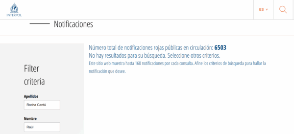 De acuerdo con el listado de notificaciones rojas de la organización, el copropietario de Miss Universo no sale aún como personaje buscado por los países miembros y no es buscado a nivel internacional.