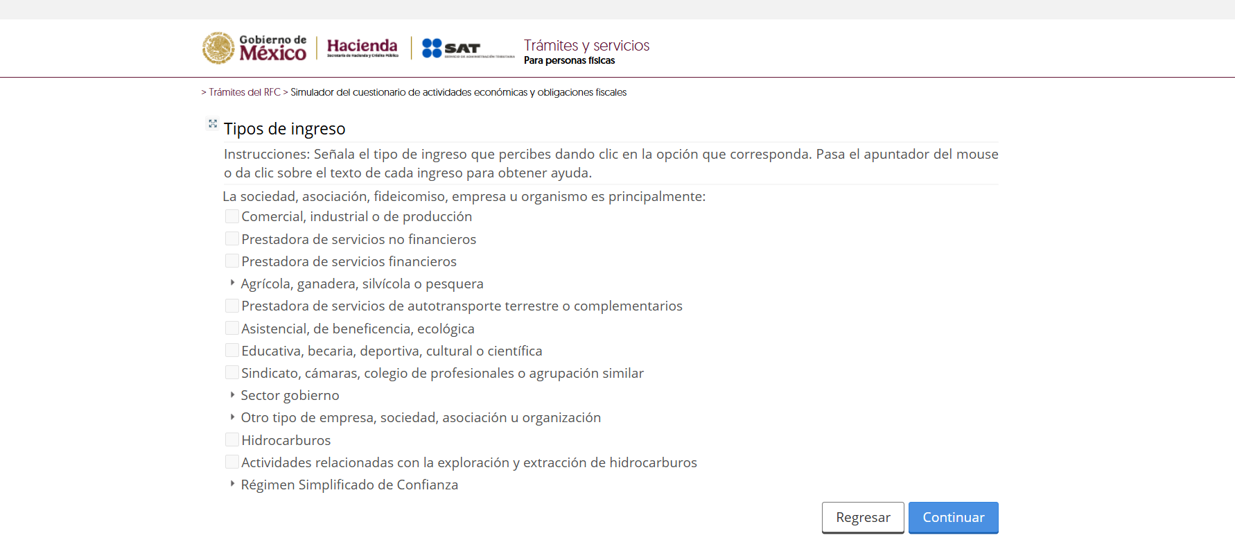 Posteriormente, tendrán acceso a un cuestionario sobre actividades económicas y obligaciones fiscales, el cual deberá completarse en su totalidad para poder utilizar el simulador.